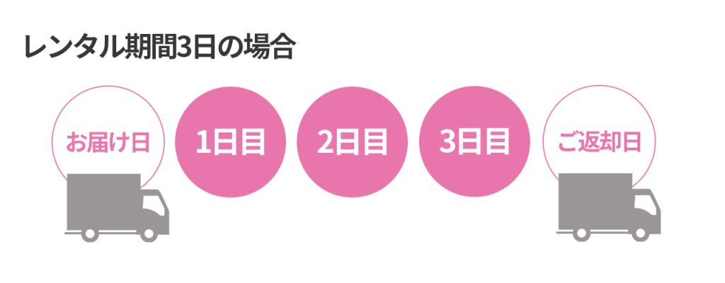 ドレリストでは、最短3日間から1日単位で最大90日間までレンタル可能です。ご予定にあわせてレンタル日数をお選びください。
